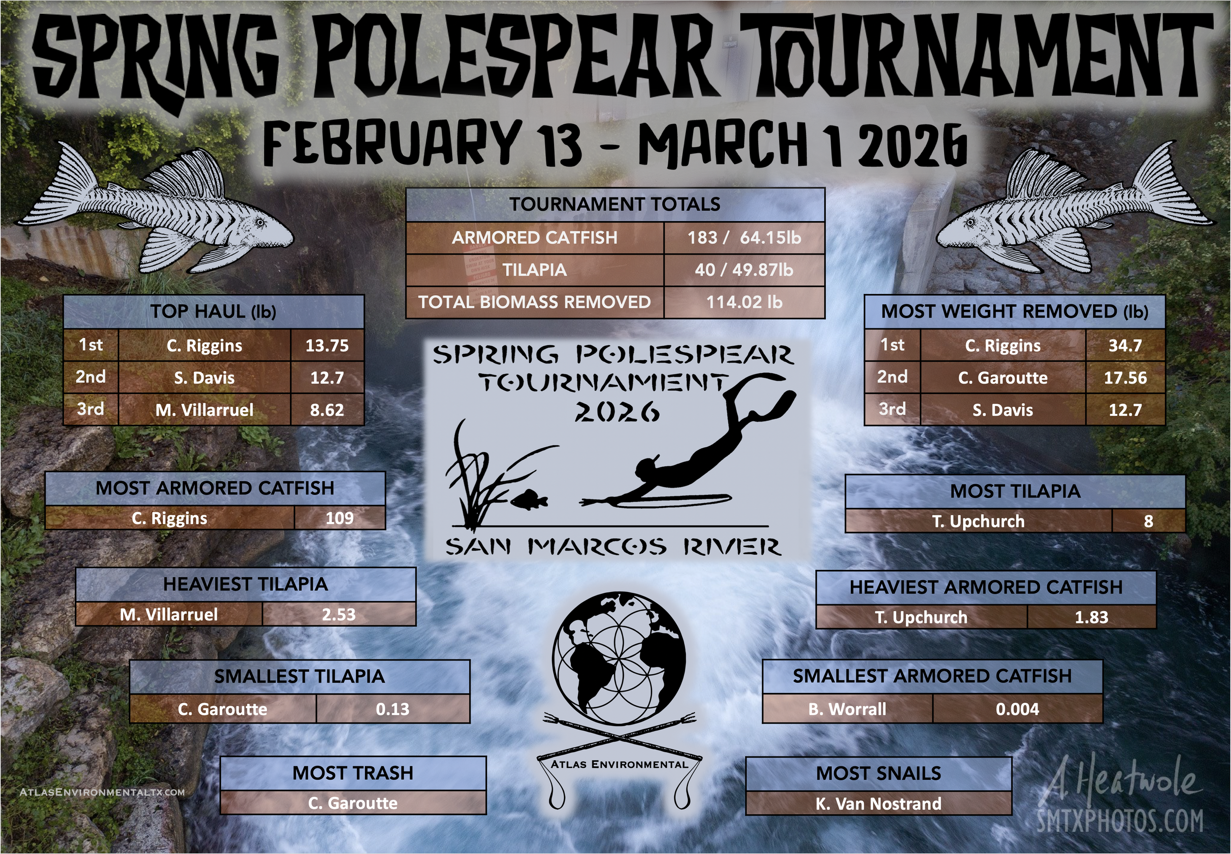 River map, access points, and parking options for Upper section. San Marcos River Polespear Tournament.